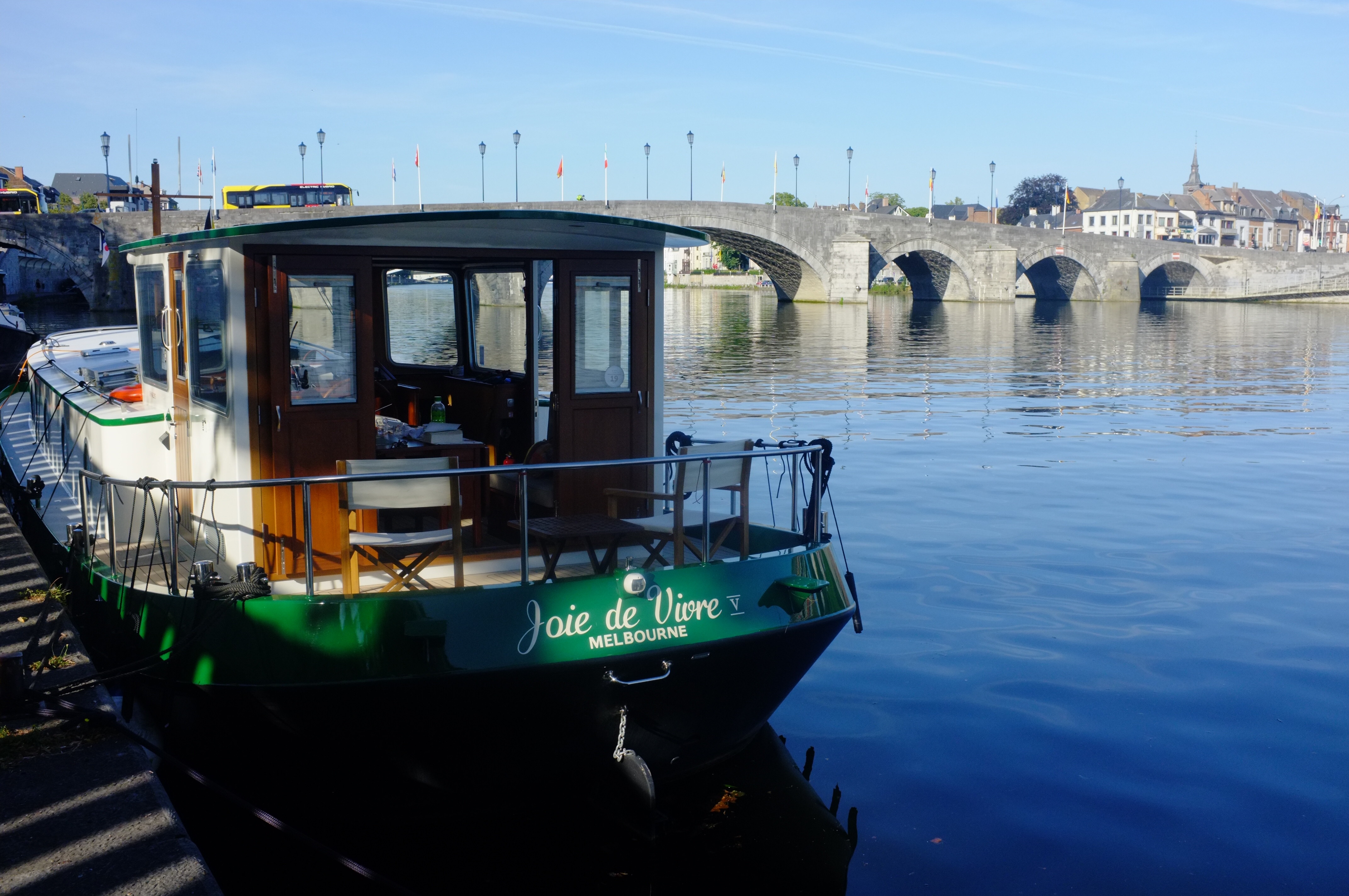 From Auvelais it was onto Namur, which sits at the confluence of the Sambre and the Meuse. Instead of keeping on the Sambre towards Maastricht we chose to take a detour south along the Meuse. Our plans were delayed when European heat wave hit. As we were connected to power, we could run the air conditioner continuously. Why give up this comfort and move to regions unknown?