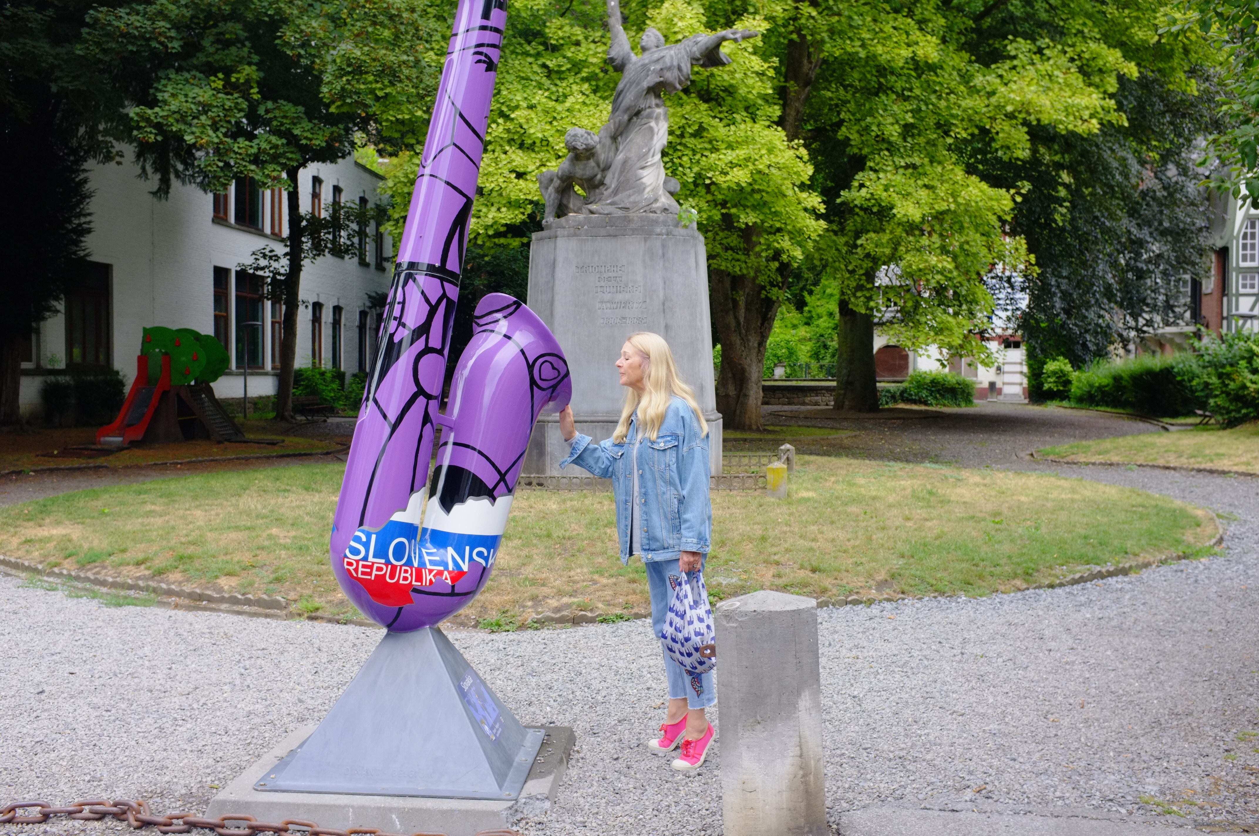Dinant is a popular tourist town, with cafes along the quay and tourist boats plying their trade on the river. They make a big fuss over the inventor of the saxophone being born here. There seems to be a replica saxophone around every corner!