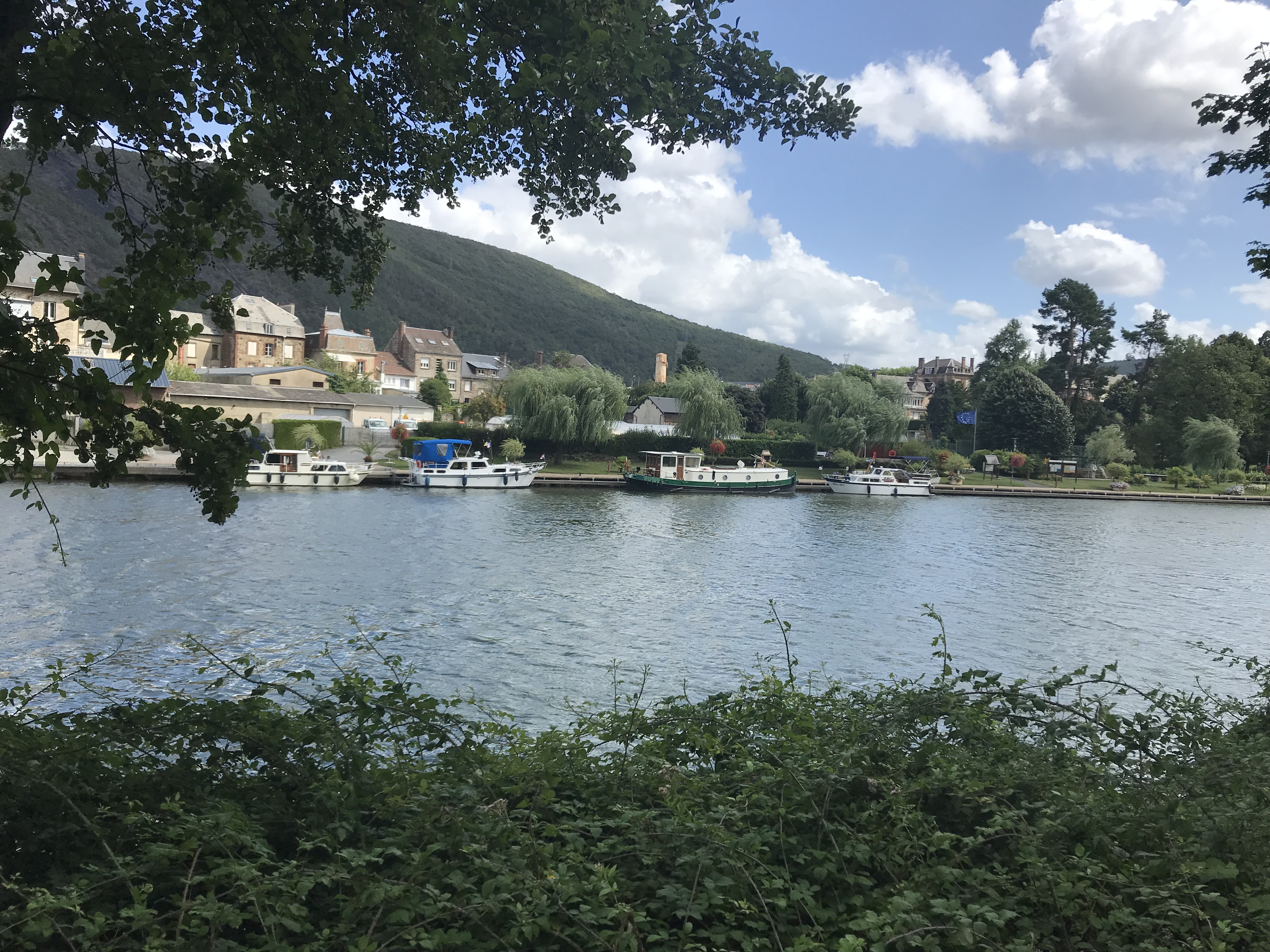 If I was to write a travel guide it would have to include a recommendation for the best boulangeries in the villages or towns on the Meuse. So as we meandered downstream the focus of each village, was ‘where is the boulangerie?’, and ‘is it open’. We are in the middle of the summer holidays, so the ‘is it open ‘ question was pertinent. For example in Revin, (which had a beautiful port), a notice on the door of the boulangerie indicated it was closed for August, as she needed a holiday and in Haybes I was lucky to catch the boulangerie open, before it closed at 11am. Again holiday hours. All in all had had success in each town except for our first day in Dinant where they had sold out of baguettes 🙁.