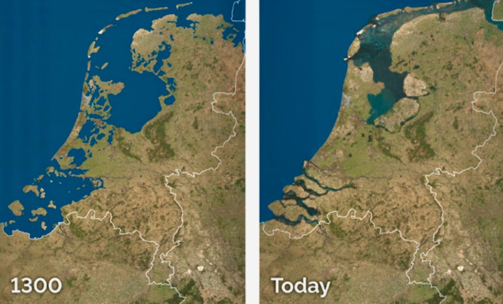 The pumping of water was was the most important function of the windmills as 2/3 of the land mass of the Netherlands is below sea level.