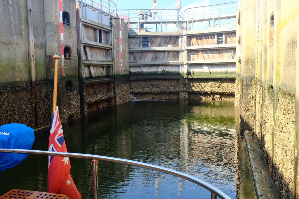 Out through the sea lock to the relative calm of the Westerschelde . The crossing took just under 2 hours and yes we just beat the wind that came in just before we entered the Terneuzen Ghent canal.