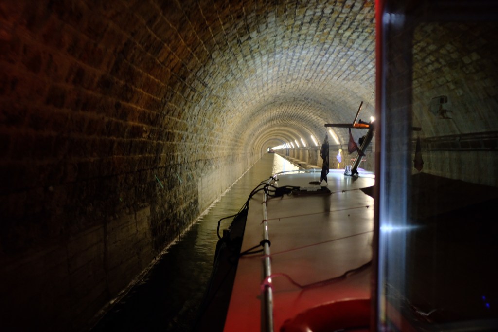 The tasting room. Yes we did make it pass the tasting room and down over 12 meters into the ground to the cellars!During WW1 the cellars were used as bomb shelters for the local populace. Today they hold at least 5 years of vintageYou will be pleased to know you will be able to drink your Mumm in space. This bottle has been to the space station and backThis section of the cellar is named the Champs Élysées and is 2kms in length More of Reims. Oh did I mention there was a galleries Lafayette in town!From Reims it was only 10km to our next stop at Silley. A quite countryside mooring next to a war cemetery, we’re 12,000 young men were layed to rest during WW1. A tragic waste of life and lost opportunities.At the plateau level of the canal is a 2.3km tunnel that takes you under Mt. Billy before descending 10 locks to the Canal Lateral au Marne. Although the guide book indicated travelling time of 40 minutes, Peter completed the task in just over 15 minutesAt the confluence of the canal de l’Aines de La Marne and the Canal lateral a la Marne is the village of Conde. We stopped overnight to rest from the riggers of the day. Not much to report here . The church was locked, the covered market was empty. The only activity was at the automated self serve farm shop serving hot and cold food on the edge of town