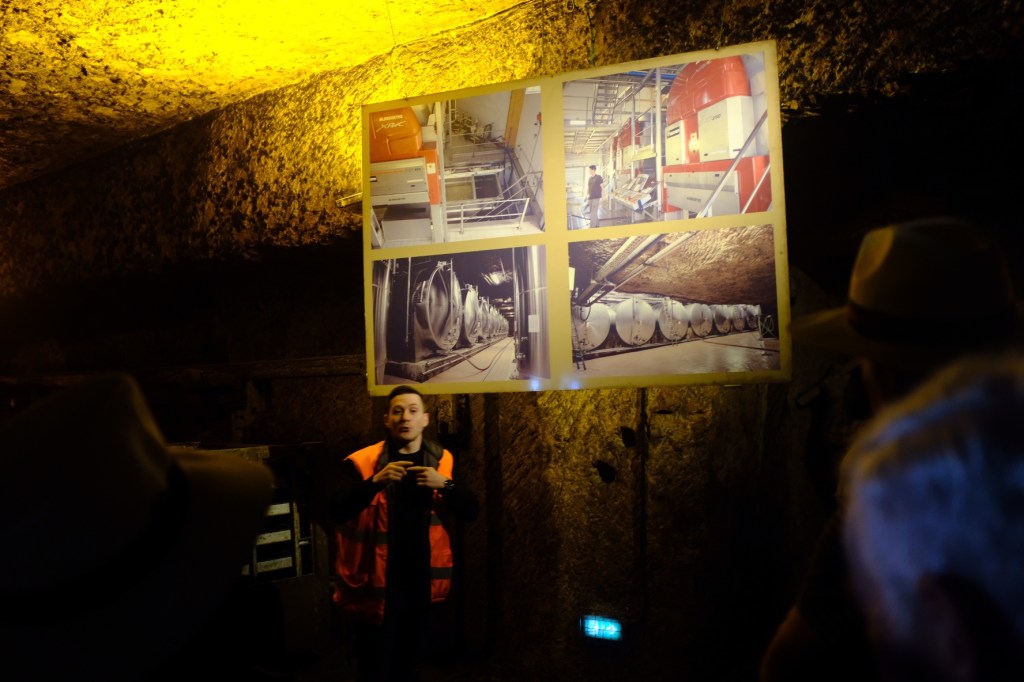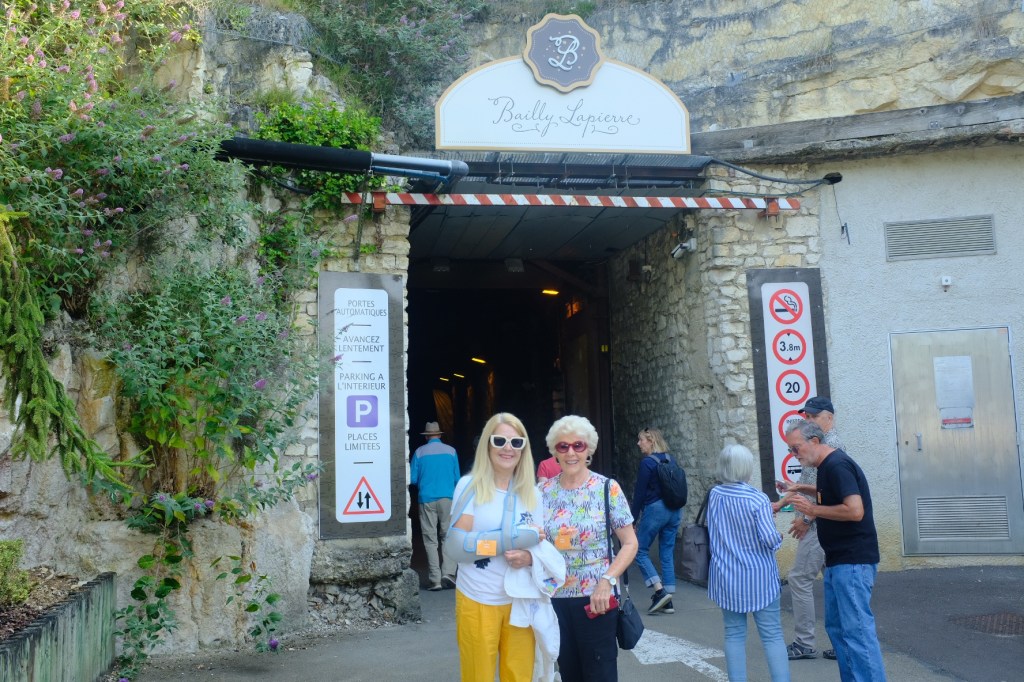 The 10 acres of underground cellars started life as a quarry in the Middle Ages, providing the stone for such notable constructions as the Pantheon and Notre Dame de Paris, to mention a few. The quarrying for limestone ceased in the 20th century and the cellars were firstly devoted to mushroom cultivation and then from 1972 , wine production. The method for production of cremant is roughly the same as for champagne, though the fermentation in the bottle is only 18 months, where champagne is 4 years. Peter says the only other difference between the two is the price! And of course it can’t be called champagne as we are not in the champagne region. But just like champagne the winegrowers are pushing for the recognition of their wines, by owing the cremant label and protecting it from being used on wines from other areas.
