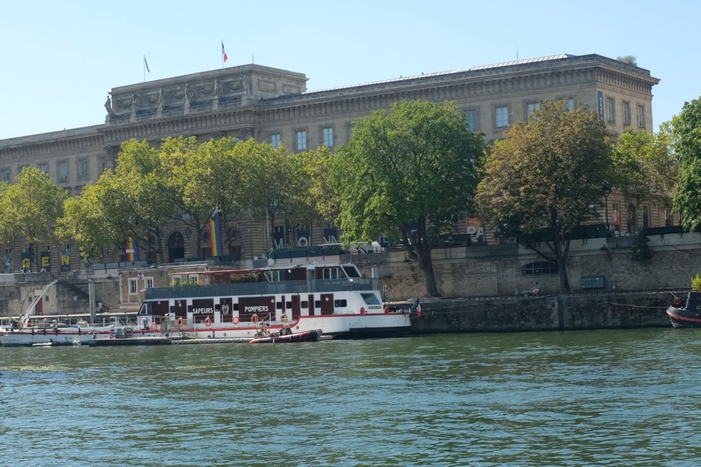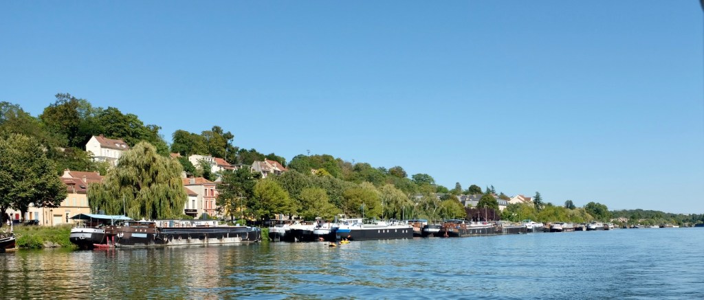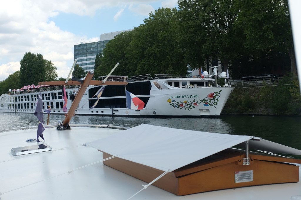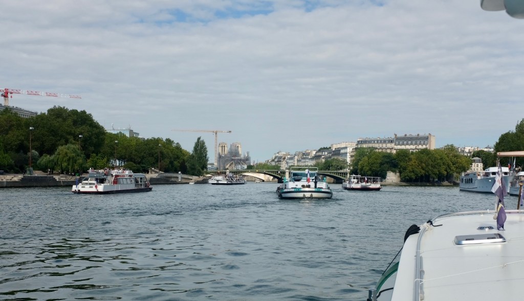 Peter was hoping to leave the port at Arsenal around 8am, in order to avoid the tourist traffic travelling through Paris on the Seine. But as I mentioned in an earlier blog Paris is in full swing preparing for next years Olympics. As the river is going to be a centre piece it is closed to all traffic most mornings until 11am. You might ask what they are doing. Sorry I have no idea…. So we exited the port at Arsenal just upstream from the Ile St. Louis after 11 and entered the fray.