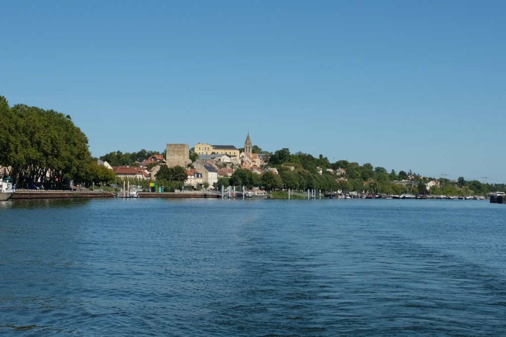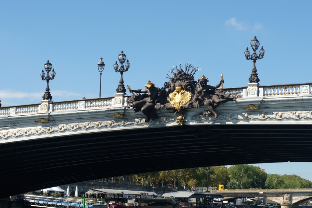 Out through the lock onto the SeineThe first bridge that we past under was the Pont Sully which crosses from the right bank to the left, and across the tip of the Ile St. Louis. At this point the bateaux mooches take the starboard side, while the rest of us the port. Traffic lights alert when it is time to travel downstream.Ile St Louis aheadCaptain looking relaxed!Past the Ile St Louis approaching the Ile de Cite and yes that’s Notre Dame. I do need to say if you ever get the chance to take your boat through Paris it is an experience not to be missed. To see this city from the water is an awesome feat, one that words alone could never describe. Let’s just say it was one of my most memorable exploits.There are 37 bridges that cross the Seine through Paris. This is the Pont Double that Carrie’s traffic from the Ile de Cite to the Latin Quarter. In the distance you can see the Pont St Michel followed by the Pont Neuf, which is perhaps the most famous of them all. This is the oldest standing bridge across the SeineMajor restoration of Pont Neuf was completed in 2007, to celebrate its 400th anniversary. The stones masks, or mascarons are 381 in number and decorate the underside of the bridge. The originals can be found in both the Carnavalet and Cluny museums. The statue on the bridge is Henry IV, destroyed in the French Revolution but replaced in 1818. The department store La Samaritan stands on the right bank. This was originally built as a pump house and was decorated with an image of a Samaritan women at a well. Hence the name!The first Pont de Arts was a nine arch metal pedestrian bridge built in Napoleon’s time. The bridge was bombed twice in WW2 and was closed in in the mid 70’s after a barge ran into it. The current seven arch pedestrian bridge was completed in 1984. Further damage was caused when tourists decided to attach love locks to the railings on the side of the bridge. In 2014 it was estimated there was over 700,000 locks on the bridge and in June of that year part of the parapet collapsed due to the weight. An estimated 45 tons of locks were removed in 2015. The metal railings have since been replaced with a special glass but as you can see from the picture above. they are still working on the bridge.From Pont des Arts to Pont RoyalMusee D’Orsay on the left bank which houses the largest collection of Impression and Post Impressionist art in the world.The Assemblee National or lower house of the French parliament, and what’s that in the distance!The most ornate bridge is Pont Alexander III. It connects the Champs Élysées to the Eiffel Tower and the InvalidesThe bridge was named after Tsar Alexander III to commemorate the Franco Russian alliance of 1892 and reflects the style of the Grand Palace which it leads to on the right bank. You might remember it from the last scene in Midnight in Paris. During the Paris bid for the 2024 Olympics diving boards were installed on the bridge. I wonder if they will feature again next year.The sculpture representing Land Victory on the Pont des InvalidesThe Bateau Mouches only take you as far as the Eiffel Tower before they turn around an go upstream.And it’s a great view of this Paris icon from the waterPont de Bir Hakeim, renamed in 1948 to commemorate the battle of Bir Hakeim fought by the Free French forces against the Germans in 1942. The bridge has two levels, one for motor vehicles and pedestrians while the upper level Carrie’s the line 6 metro.Pont de Grenelle passes behind a replica of the Statue of Liberty. This particular replica (there are 3 in Paris) was given by the U.S citizens living in Paris in 1889 to commemorate the French Revolution. It is a quarter scale version of the original and was used as a working model during the construction of the original.Pont Mirabeau featuring four bronze statues and the coat of arms of Paris.Leaving the city in our wake, we were now in the suburbs and how the scenery changed. One lock and a distance of approximately 15kms from the centre of Paris was our overnight stop at Rueil Malmaison. Famous for the Chateau Malmaison, where Napoleon and his first wife Josephine lived and later as a haunt of Impressionist painter the likes of Renoir, Manet and Monet we only stayed one night as we were racing to catch up with James and Julie on Mimosa, who were waiting for us at Pontoise.Margaret and I walked up the hill to Saint Pierre Saint Paul church where Josephine and her daughter Queen Hortense are buried.From the Seine we turned right onto the Ouse at Conflans Sainte Honorine. This town is recognised as the capital of the French waterways and the right bank is lined with old barges, which have been converted into house boats.Arriving at Pontoise after a long day Mimosa was waiting at the dock with dinner prepared!