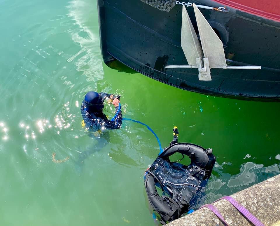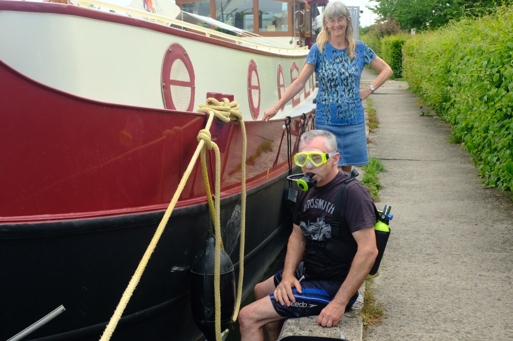 Well, by this time you must know a little about the challenges of barging in Europe. Luckily this particular challenge was not ours, but belonged to our travelling companions on Mimosa. A broken bow thruster prop was suspected and finally confirmed with an under water inspection.