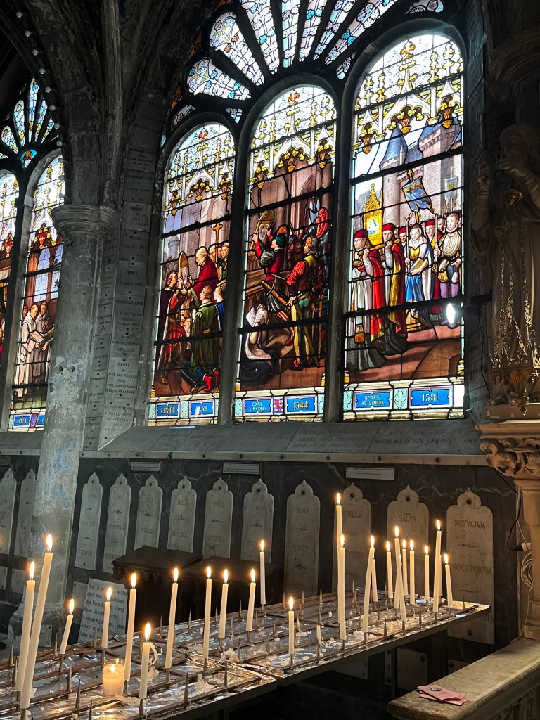 The church of St. Etienne contains the macabre sculpture of a petrified, skinless corpse on the tomb of Rene Chalon, Prince of Orange. Dying from wounds, sustained in battle, his deathbed wish was that his tomb depict his body as it would be three years after his death. The church was closed by we did manage to find a replica of the sculpture in the tourist office.