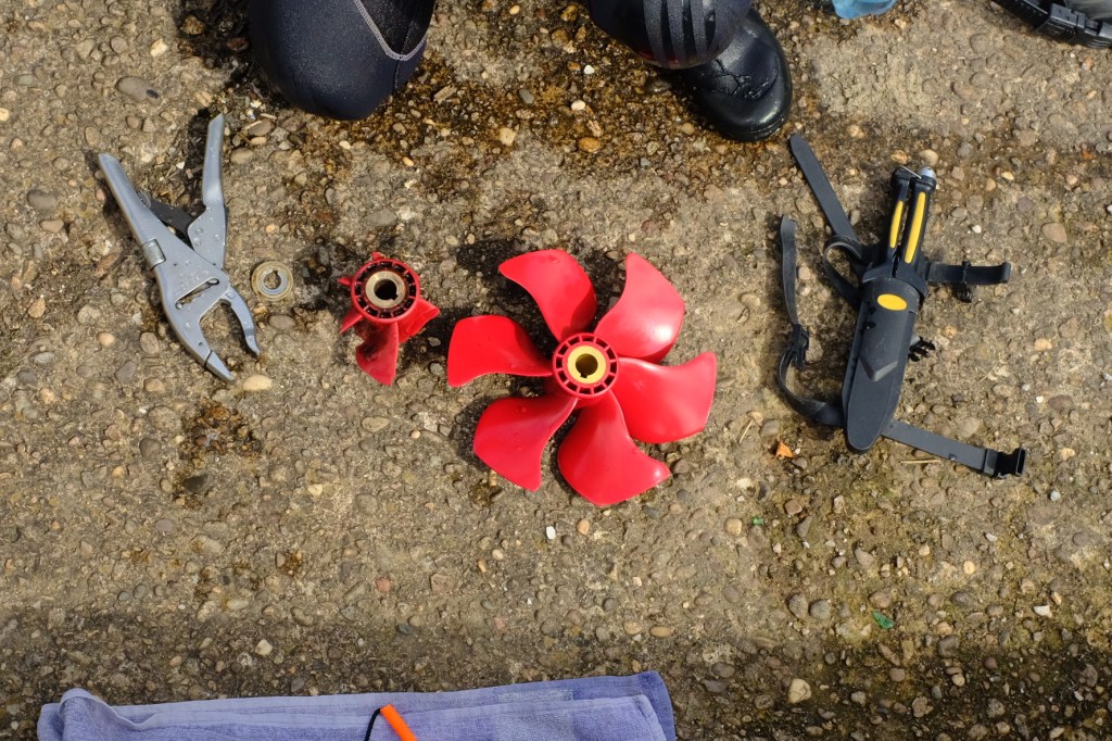 We stay put for a week, waiting for the diver Momo to come and replace our bow thruster propeller.