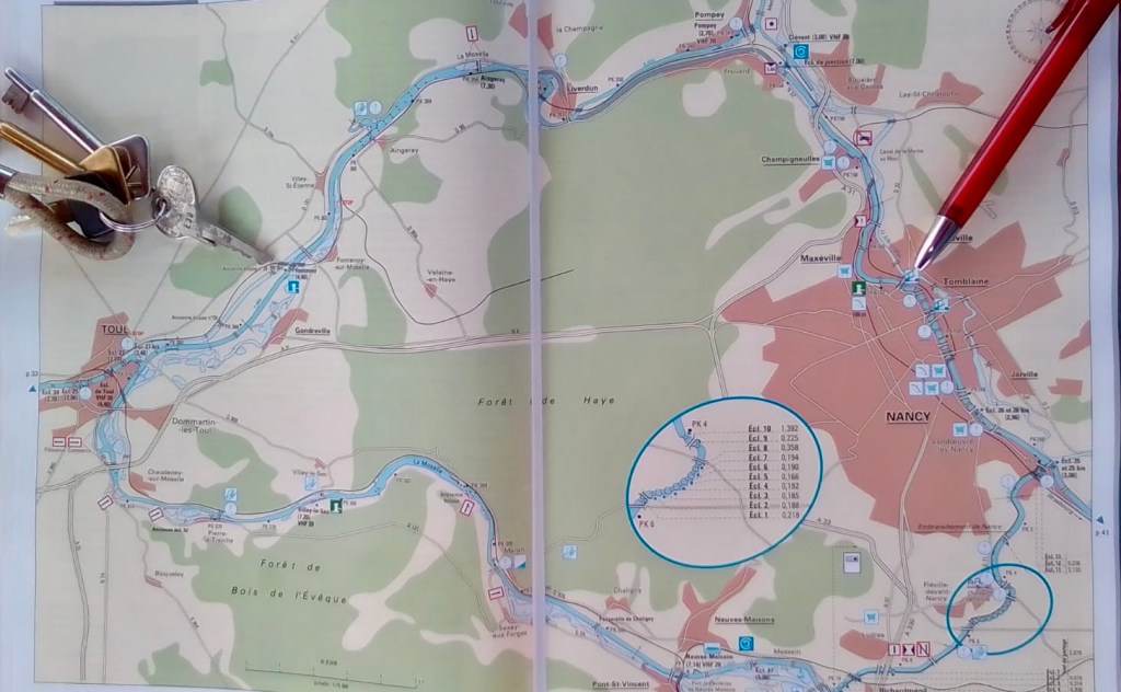 Option 1 and I must say the preferred route is to travel north along the Moselle, before turning south towards Nancy. This is a distance of 33kms, 6 locks and 2 lifting bridges. Easy