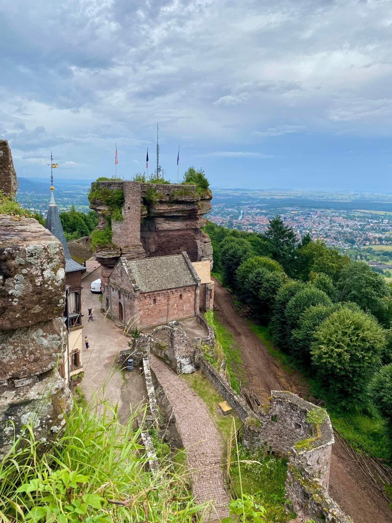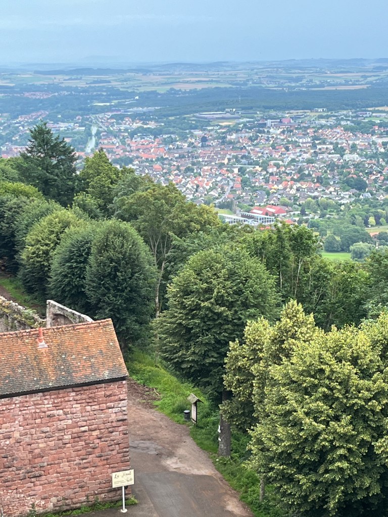 Situated on a high rocky outcrop above Saverne is the Chateau de Haut Barr. This medieval castle, built in 1100 is only a pale shadow of its former glorious self but the views from the top easily explain why it is referred to as the “Eye of Alsace”. It was last used in WW2 by the German Army as a strategic viewing point from where they keep track of the liberating allied troops. The 1 1/2 hour walk up the hill is not for the faint hearted but 4 brave souls and 1 energetic dog hiked up the almost 500 meter incline to sample the sights and lunch at the cafe at the top.