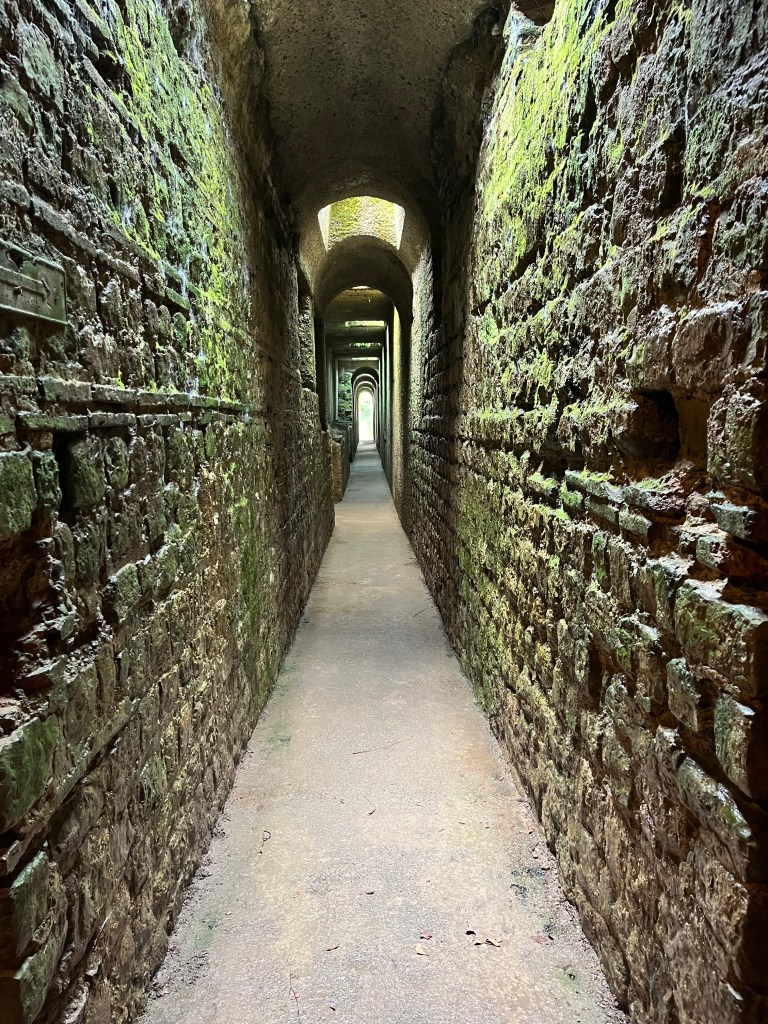 Derived from the Greek word meaning chasm a casemate is a bomb proof vaulted room intended to accomodate troops and equipment.