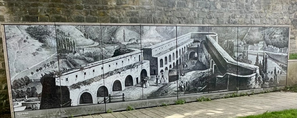 The next day we again embarked on the train to Luxembourg city, only 40 minutes away. Yes the capital of Luxembourg is Luxembourg. Perched high on cliffs that drop into the narrow valleys of the Alzette and Petrusse rivers the city has a complex layout set on several levels, with many bridges and viaducts that straddle the gorges. Because of this unique geographic location the city has been a place of important military significance from the times of the Romans.