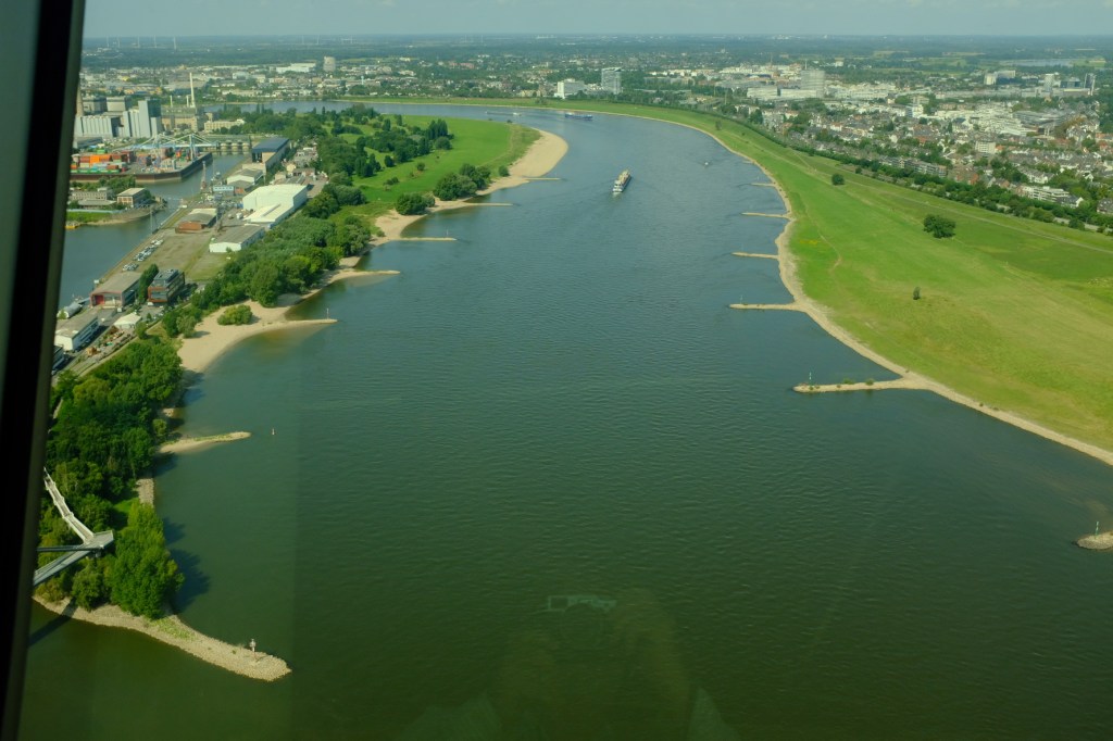 The picturesque Rhine is through the gorge, downstream from Strasburg and upstream from Koblenz, where the river cascades through this rocky valley, dotted with castles and vineyards. But that was not to be our path. Ahead of us was a 273 km journey from Koblenz to the border with the Netherlands (no locks), navigating with the large barges that ply the river. The scenery changed from small spa towns to the industrial heart of Germany, or as the Germans know it, the “Kolnpott”. Due to this industrial heritage most of the towns along the river were heavily bombed during WW2. Not many of our fellow bargees have taken on the challenges of this fast following river. The winding channel with intermittent groins, the ferries, the unpredictable current, the wake from the large barges and the incessant traffic all require constant attention. The river is forbidden to hire boats and pleasure boats over 20 meters. To captain a boat over 20 meters on the Rhine requires a special license attained by navigating up and down the length of the Rhine 8 times and sitting a series of exams.