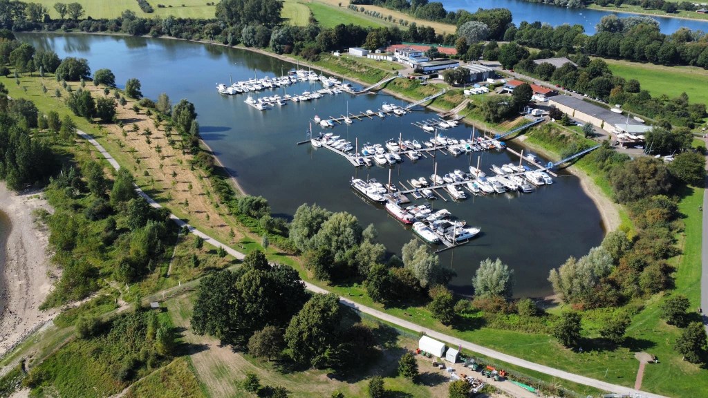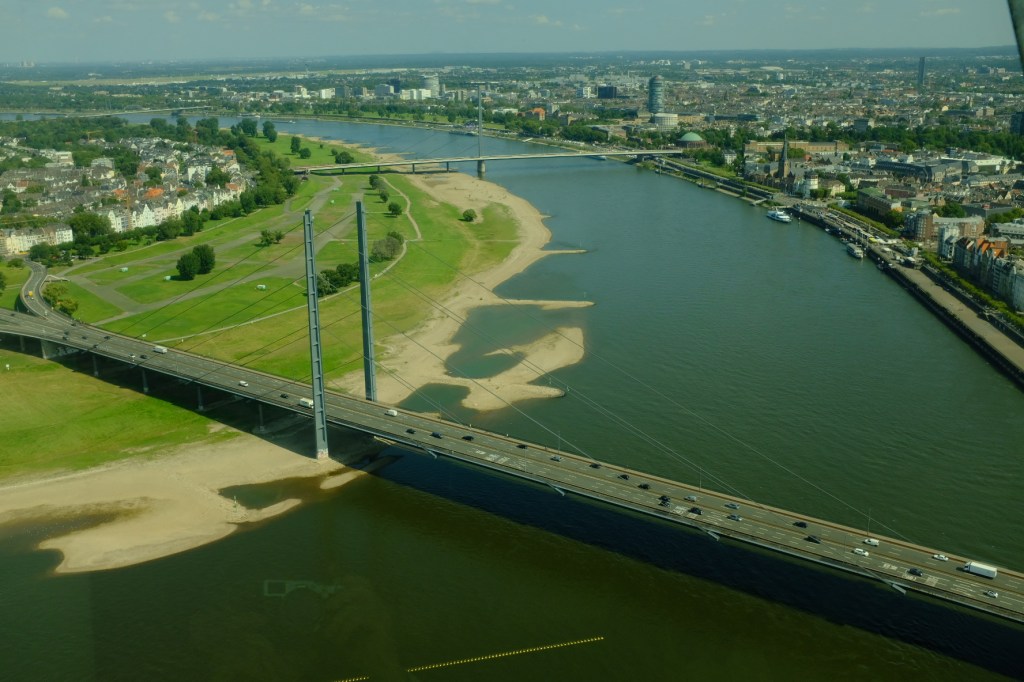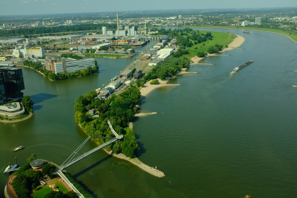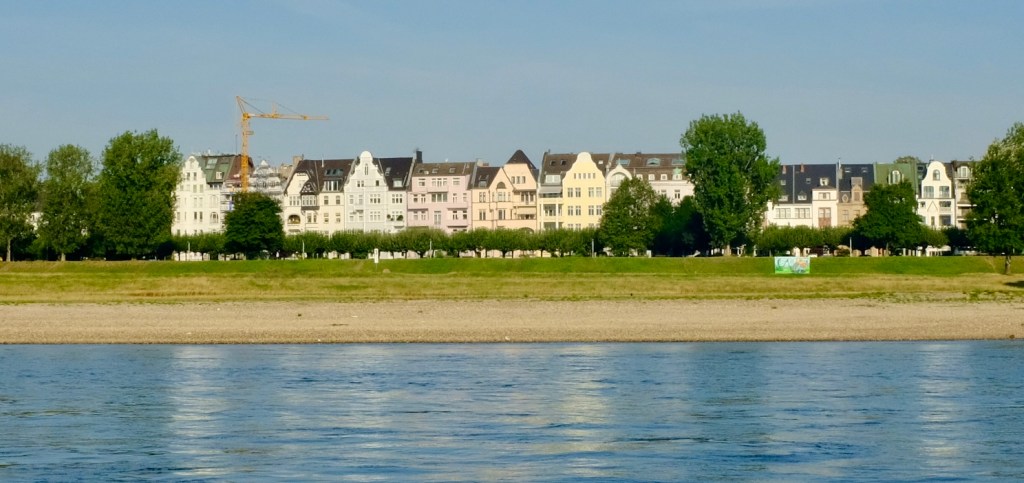 Travelling downstream , the town of Oberkassel is on the left bank, across the river for Dusseldorf. Unlike its neighbour who lost at least 90% of its housing stock during the air raids of WW2 this area was left untouched. The meadow in front of the houses hosts a 9 day festival each year.