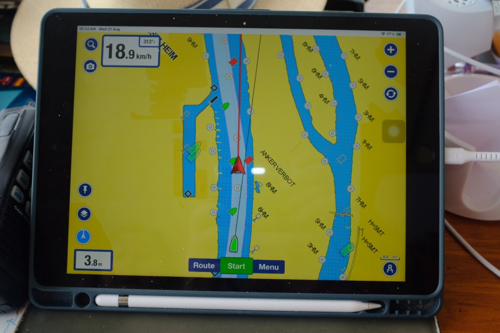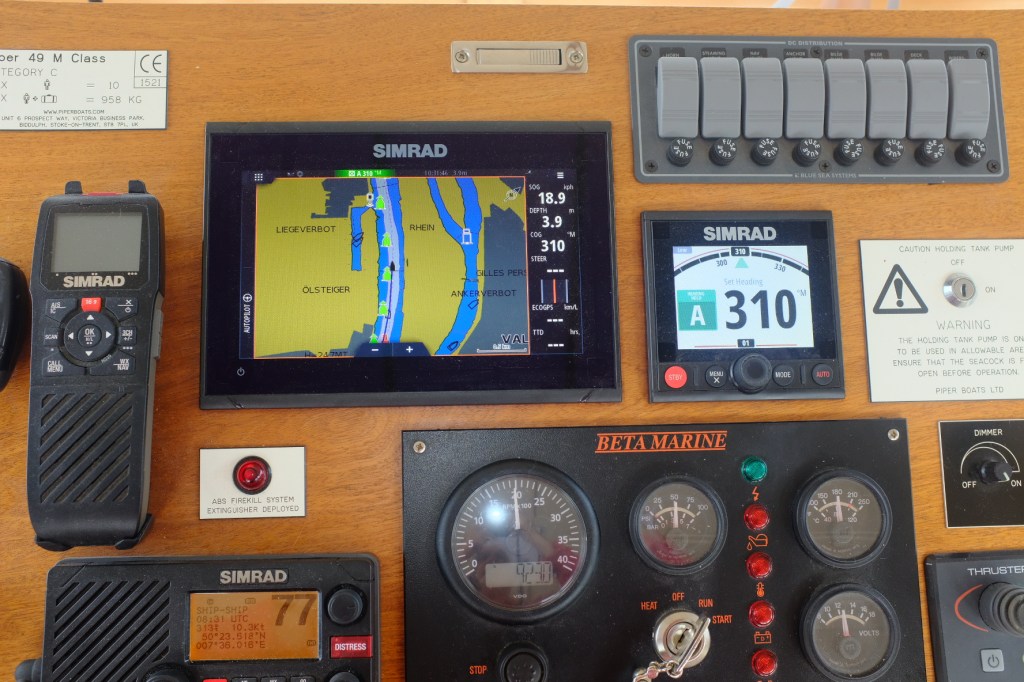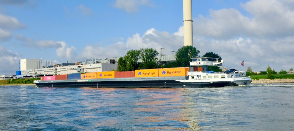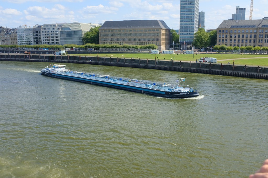 2 days in Dusseldorf it was back on the river. I must mention that there are no locks, though this does not make the navigation on the Rhine any easier. At all times it is important to keep an eye on the barge traffic. When approaching a boat coming towards you the rule is to pass port to port, unless the boat displays a blue board on the starboard side. This is called blue boarding and notifies you that they wish to pass starboard to starboard.