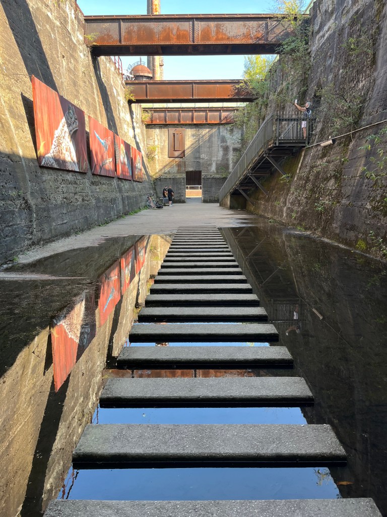 After a walk through the town we felt as though we had explored all the sights that Duisburg had to offer within 1 hour. Not to be discouraged we grabbed a tram to the Landschaftpark north of the city. This was the site of the old iron works that closed in 1960 Today the area has been transformed into a leisure park. A very innovative creation that pays homage to the hard workers of the past.