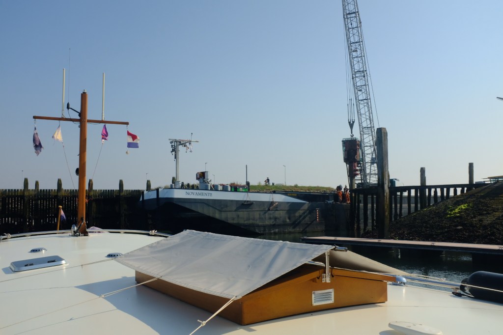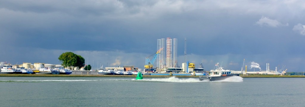 On leaving the Veerhaven it is mandatory to report into port operations, stating your intended destination. Rotterdam is the biggest harbour in Europe, so not just anyone can blunder through. Not much traffic to concern us , though we were asked by the port authority to pass a big ship starboard to starboard instead of the usual port to port.