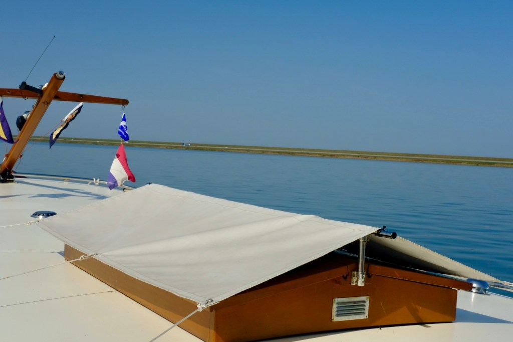 Leaving Bolsward it was 43 kms, or 4 hours, across the Ijseelmeer to Den Oever, North Holland. The most challenging part of the journey was travelling through the lock at Makkum. Not only did I need to tie up in this small lock, but at the same time access an app to pay for our passage. Quite a balancing act!