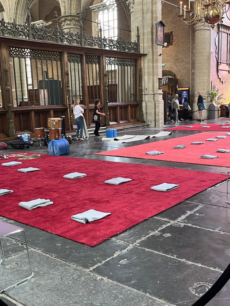 Our mooring in AlkmaarThe weigh house in the centre of town was built in 1390 and was originally a guesthouse to welcome poor travellers. There is a large square in front of the weigh house that accommodates the large cheese market, a tourist attraction during the summer months. On the North Holland canal I spied a polar bear. Is he pissing into the canal! There were originally 10 windmills on the ramparts. Today only one remainsSt. Laurens church, built 1470- 1520 today has multiple uses including art exhibitions, fairs, concerts and it looks like a yoga class