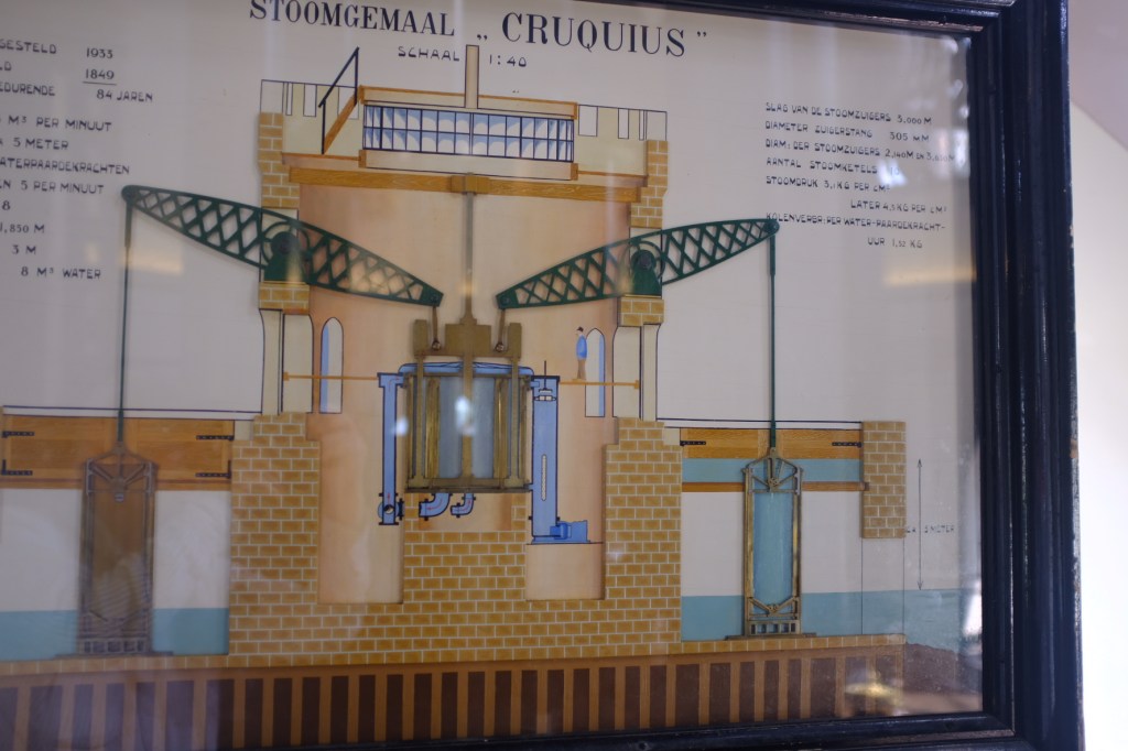 This is a map of southern Holland (mid 17th century). The standout feature is the 170 square kilometre lake in the centre of the map, the Haarlemeere. I have marked with a red arrow Amsterdam, Haarlem and Leiden so you have an idea of the dimensions of this huge inland lake. This could be a dangerous place during a storm, not only for navigation, but over the years it had swallowed many innocent villages. This tendency to for an inland waterway to increase in size is referred to as the water wolf. Many schemes were proposed to control this monster, but it was not until a ferocious hurricane in 1836 threatened to flood both Amsterdam and Leiden that a final plan was sanctioned. A canal was built around the lake (this is the canal that we now cruise along ). Then 3 steam pumping stations were built to remove over 800 million tons of water from the 4 meter deep lake. This massive feat took only 4 years to complete. The water wolf was tamed to create docile farmland and later on, the international airport of Schiphol.The pump in actionThe steam engine that drives the pump in Cruquius is the largest ever built.It is hard to see in the photo but the Ringvaart canal is above the surrounding land, which is about 4-5 meters below sea level. Could you live happily below sea level, especially in these times of climate uncertainty?