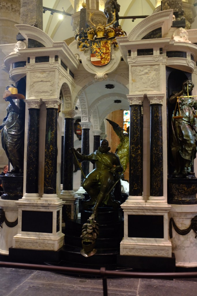 Delft has both an Oude Kirk (built in 1200) and a Nieuwe Kirk (built on the market square in 1381, as a result of a holy vision by a beggar known as Simon). The Nieuwe Kirk is site of the Dutch royal family crypt. The location this crypt was more by chance than anything else. William of Orange was assassinated in Delft in 1584. At that time the location of the Royal Mausoleum was in Breda, which was still under Spanish control. A temporary measure was to bury him in the Nieuwe Kirk, but temporary has become permanent as most members of the royal family have been interred in the crypt.